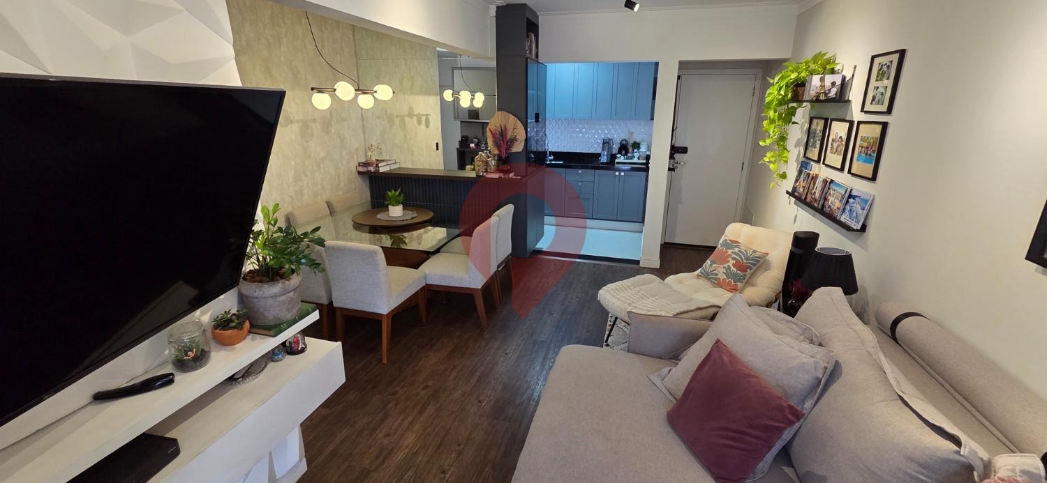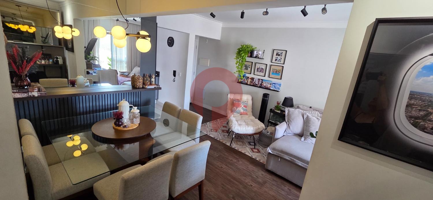 A sala ampla para dois ambientes convida ao convívio e à descontração, enquanto a sacada fechada com blindex oferece o cenário ideal para relaxar, apreciar a vista ou receber amigos.