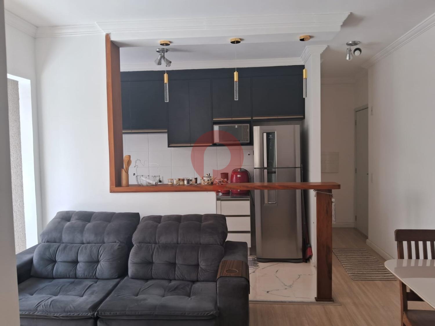 A sala se integra perfeitamente à sacada, criando um ambiente agradável para receber amigos ou relaxar no dia a dia. A cozinha e os demais espaços foram organizados de forma funcional, aproveitando cada metro do apartamento. Além da suíte, o imóvel possui banheiro social e 1 vaga de garagem, garantindo mais comodidade para os moradores.