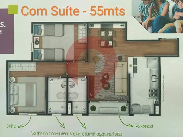 O condomínio proporciona estrutura completa de lazer e segurança, com piscina adulto e infantil, quadra esportiva, duas churrasqueiras, dois salões de festas, espaço kids e portaria 24 horas, perfeito para quem valoriza momentos de lazer sem sair de casa.