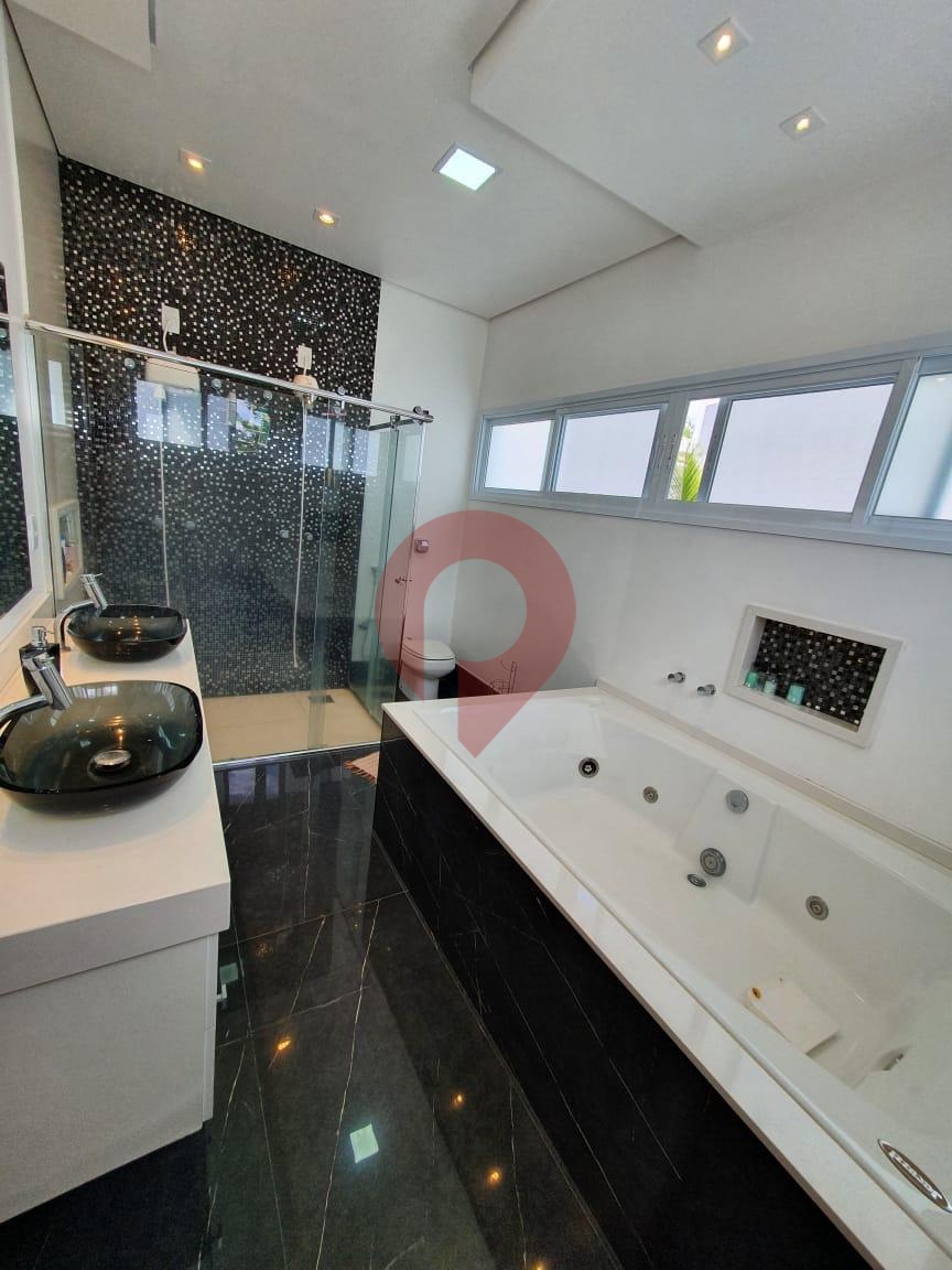 São 04 suítes incríveis, perfeitas para acomodar sua família com conforto e privacidade, no banheiro da suíte master, você encontra um projeto exclusivo com pisos Porto Bello Shop, além de uma banheira de hidromassagem JACUZZI com nichos, perfeito para relaxar após um dia agitado. O chuveiro duplo deixa o ambiente com mais conforto e sofisticação. Essa bela casa conta também com escritório e lavabo para maior comodidade e praticidade.