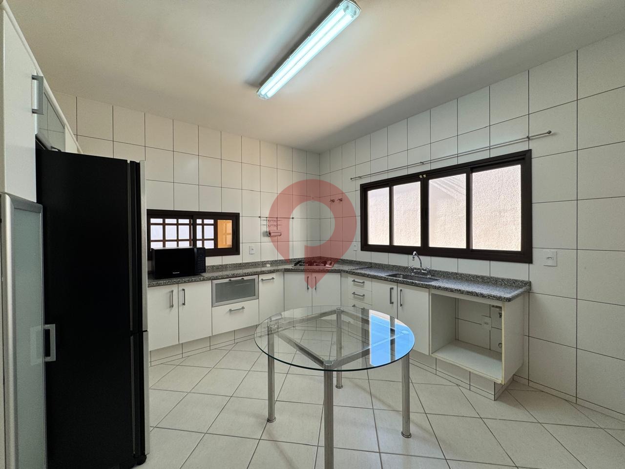 A cozinha é espaçosa e equipada com armários planejados, incluindo uma despensa para manter tudo organizado. Ainda no pavimento inferior, há uma segunda sala íntima de TV com acesso à área gourmet coberta e equipada com churrasqueira, ideal para momentos de lazer e confraternização.