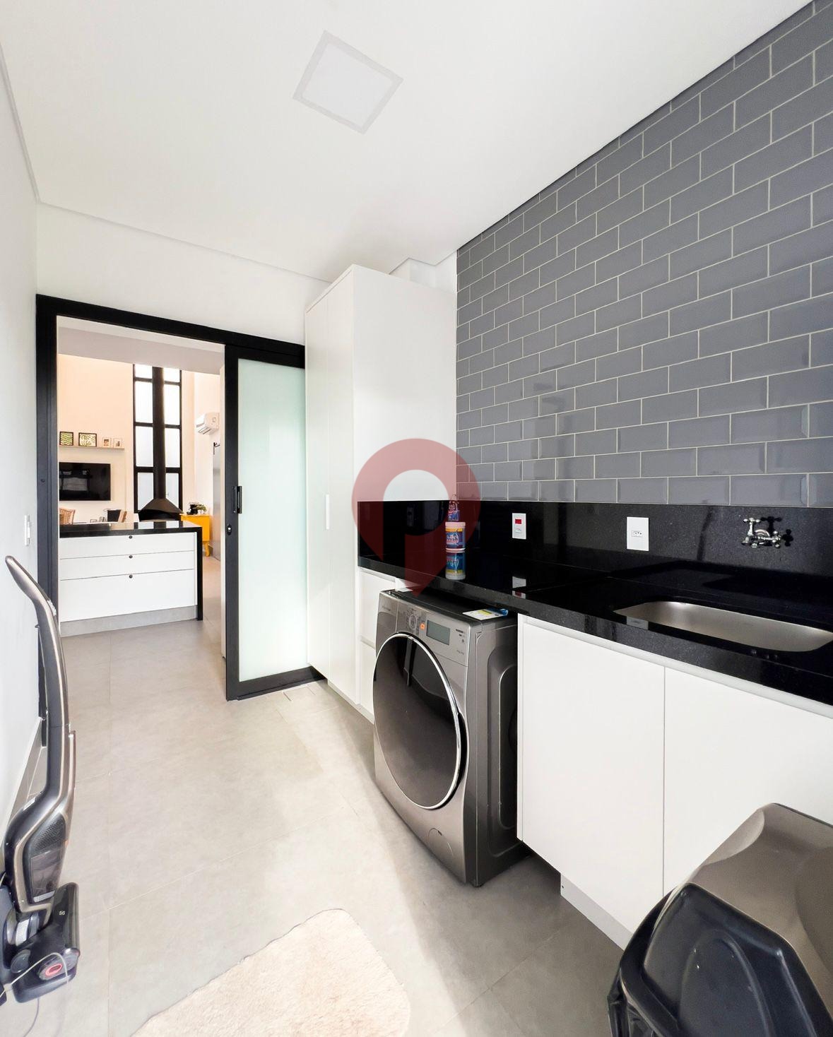 A lavanderia é completa e funcional, mantendo a organização da casa em dia.