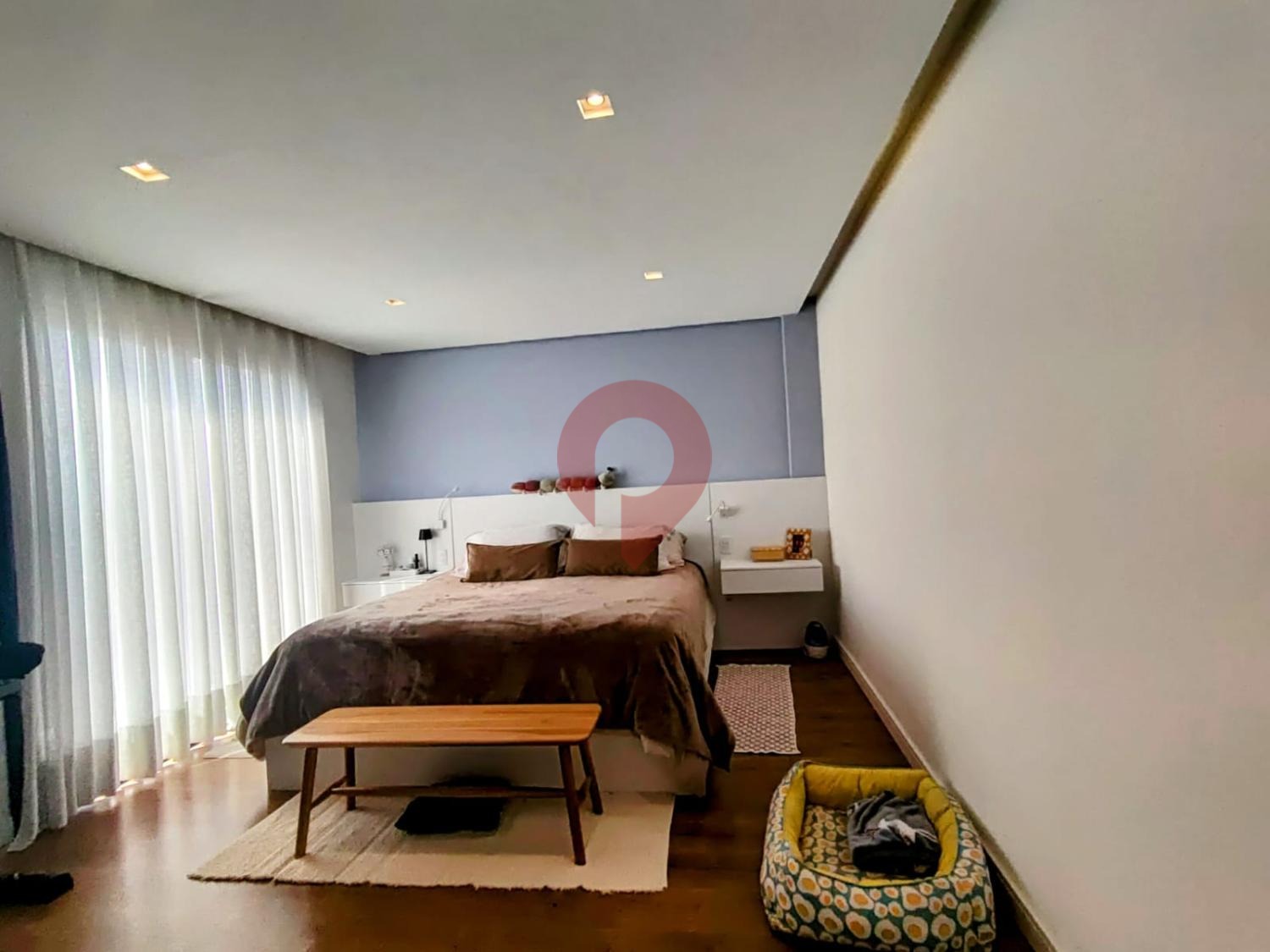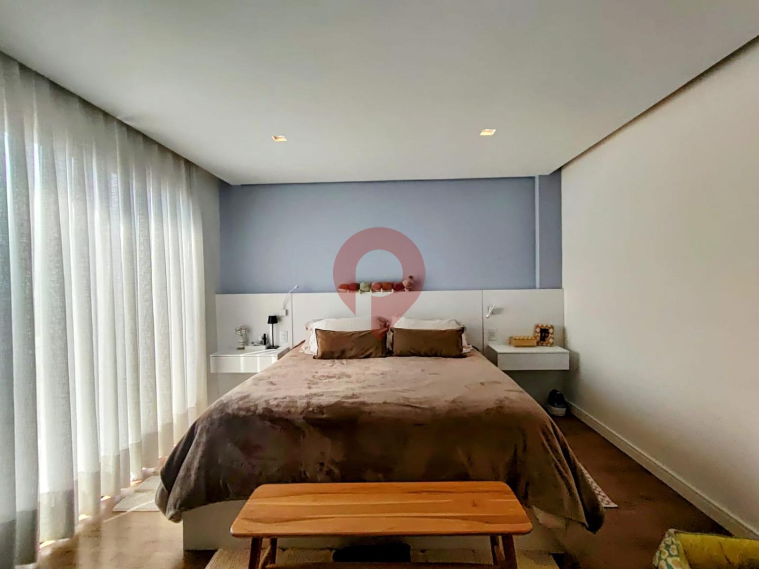 A luz natural invade o espaço por grandes janelas, valorizando o ambiente arejado e aconchegante.