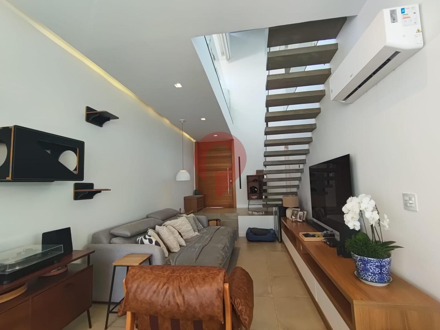 Logo ao entrar, você é recebido por um amplo living com pé-direito duplo, integrando dois ambientes com perfeição.