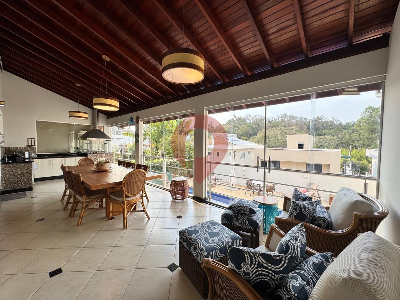 Área gourmet é um verdadeiro destaque desse sobrado, recém repaginada, com vista para o quintal com piscina e para área verde, esse espaçoso local possui fechamento em vidro, com churrasqueira e armários planejados, além de estar totalmente equipado com telas mosqueteiras.