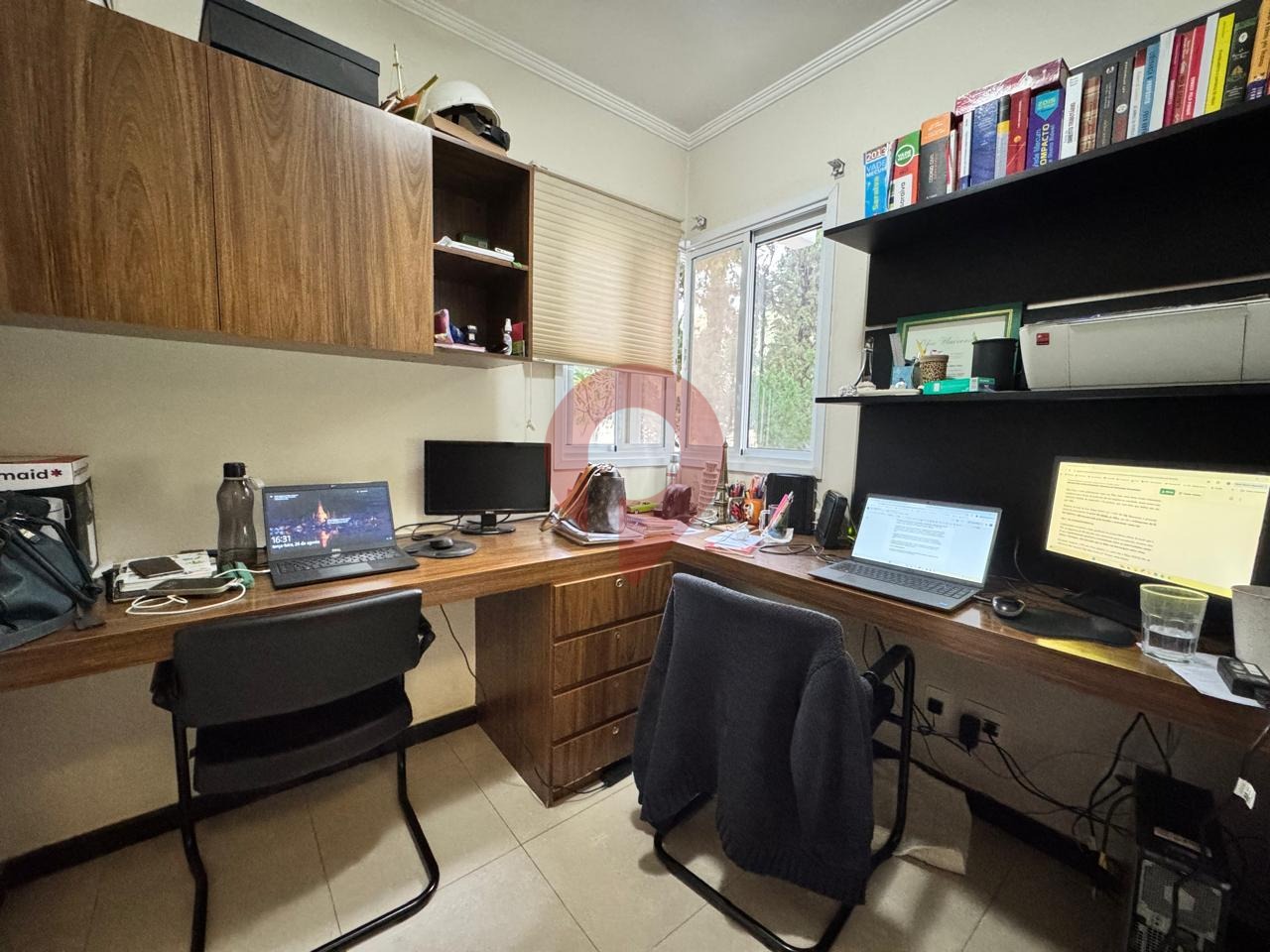 O pavimento inferior conta com escritório rico em marcenaria, espaçosa sala de TV e jantar, com muita iluminação natural, cozinha inteira planejada e reformulada recentemente, despensa e lavanderia.