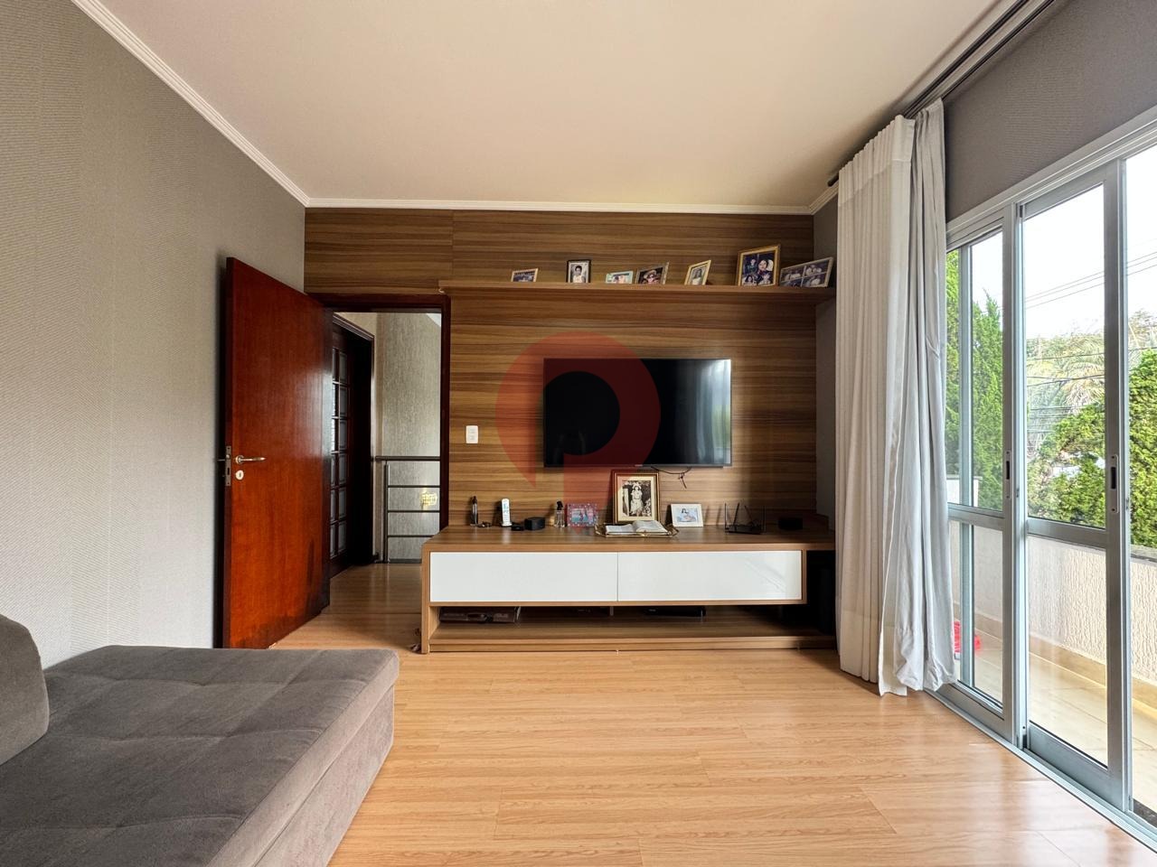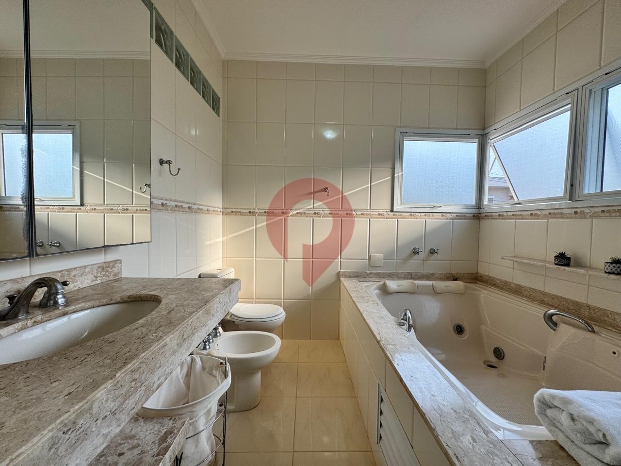 Pavimento superior conta com 03 amplos dormitórios, sendo todos suítes, com armários planejados e a suíte master com closet e banheira de hidromassagem, além de uma confortável sala íntima de TV, cujo cômodo pode ser revertido em mais um dormitório.