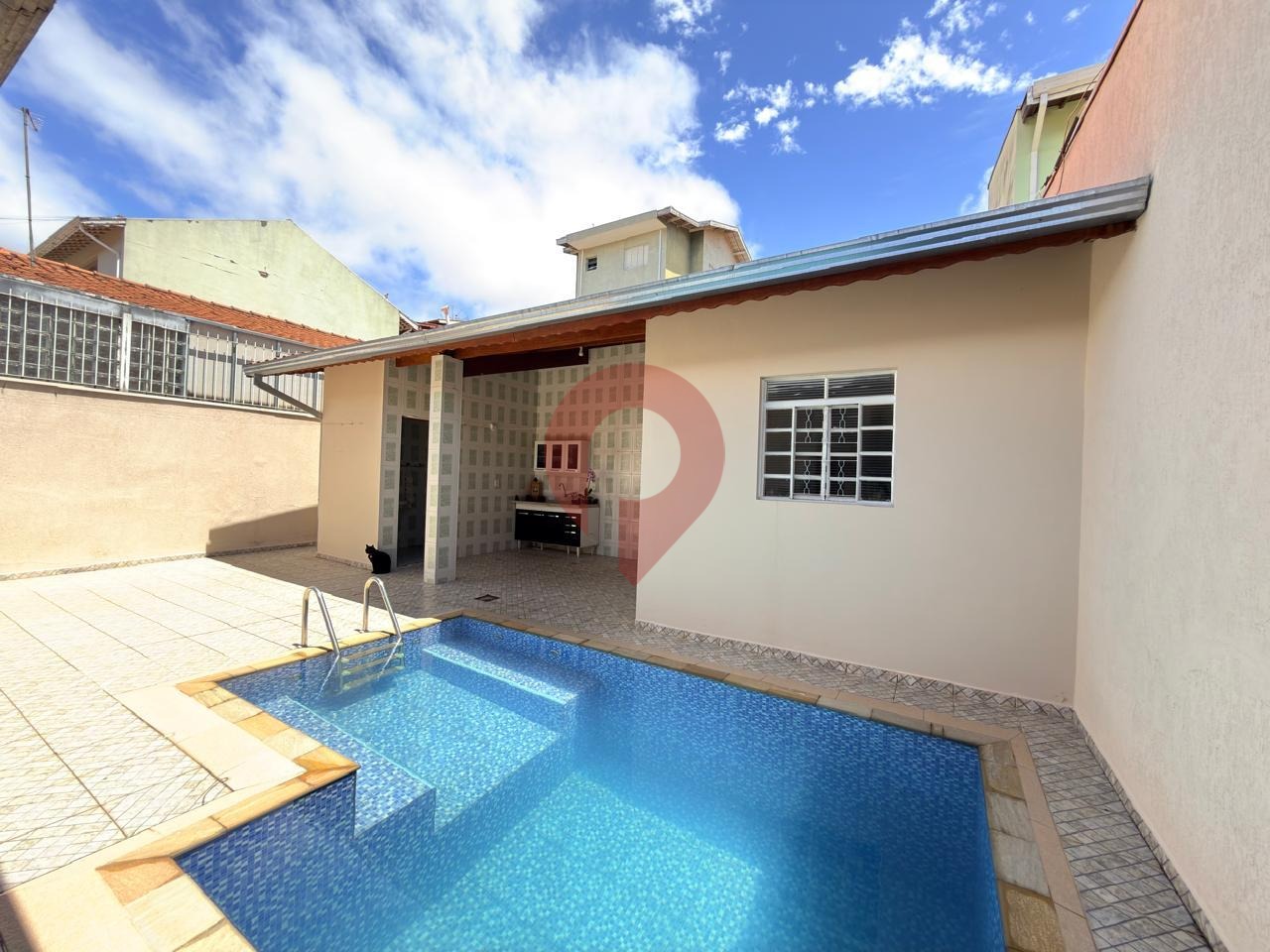 A área gourmet é um verdadeiro convite ao lazer: equipada com banheiro de apoio, cômodo de despejo e piscina integrada, é o ambiente perfeito para confraternizações e momentos de descanso.