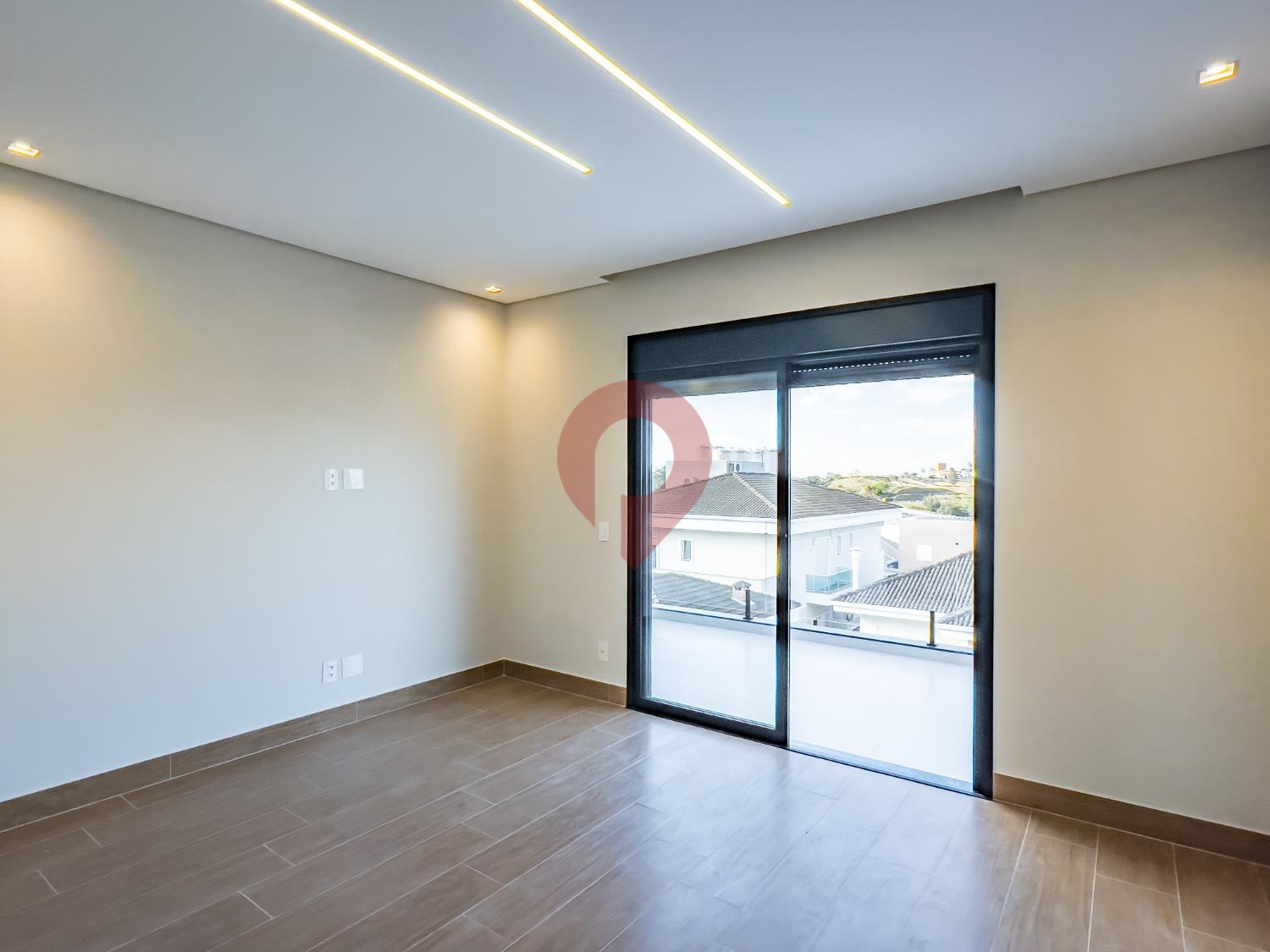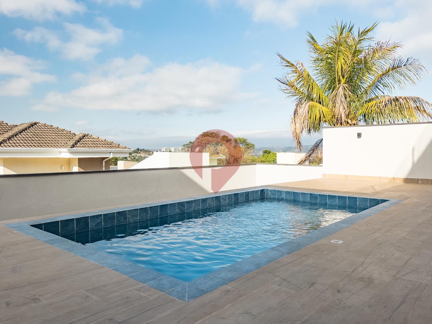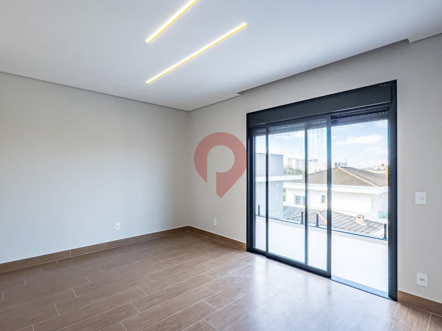 O piso superior abriga três suítes espaçosas, todas com persianas automatizadas e excelente iluminação natural. As suítes localizadas nos fundos desfrutam de uma vista livre, definitiva e deslumbrante para o horizonte, com direito a pôr do sol diário — uma paisagem privilegiada sem previsão de futuras obstruções. Na frente, a terceira suíte proporciona vista para a rua e residências vizinhas. A suíte master ainda conta com claraboia tipo domus no banheiro, realçando a luz natural e a sensação de amplitude.