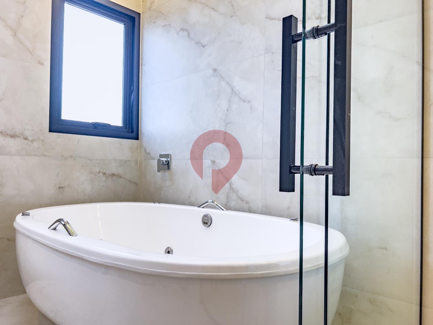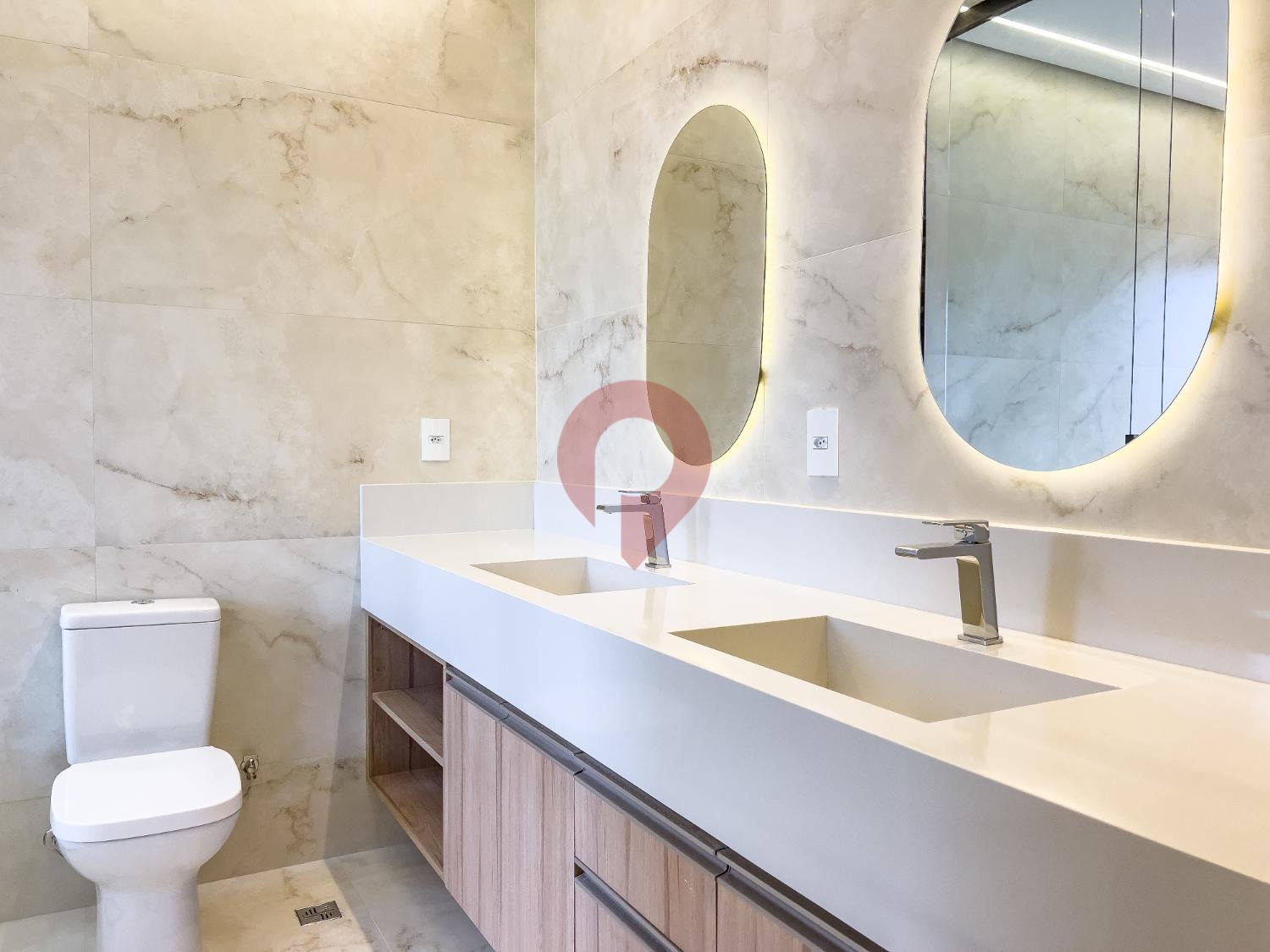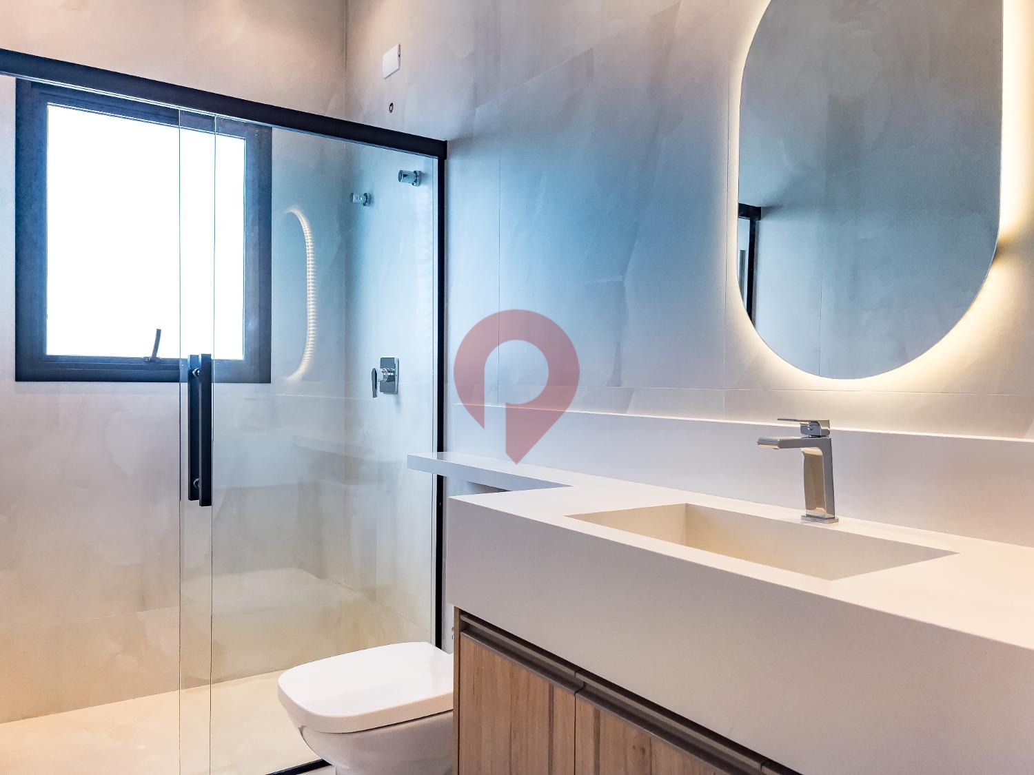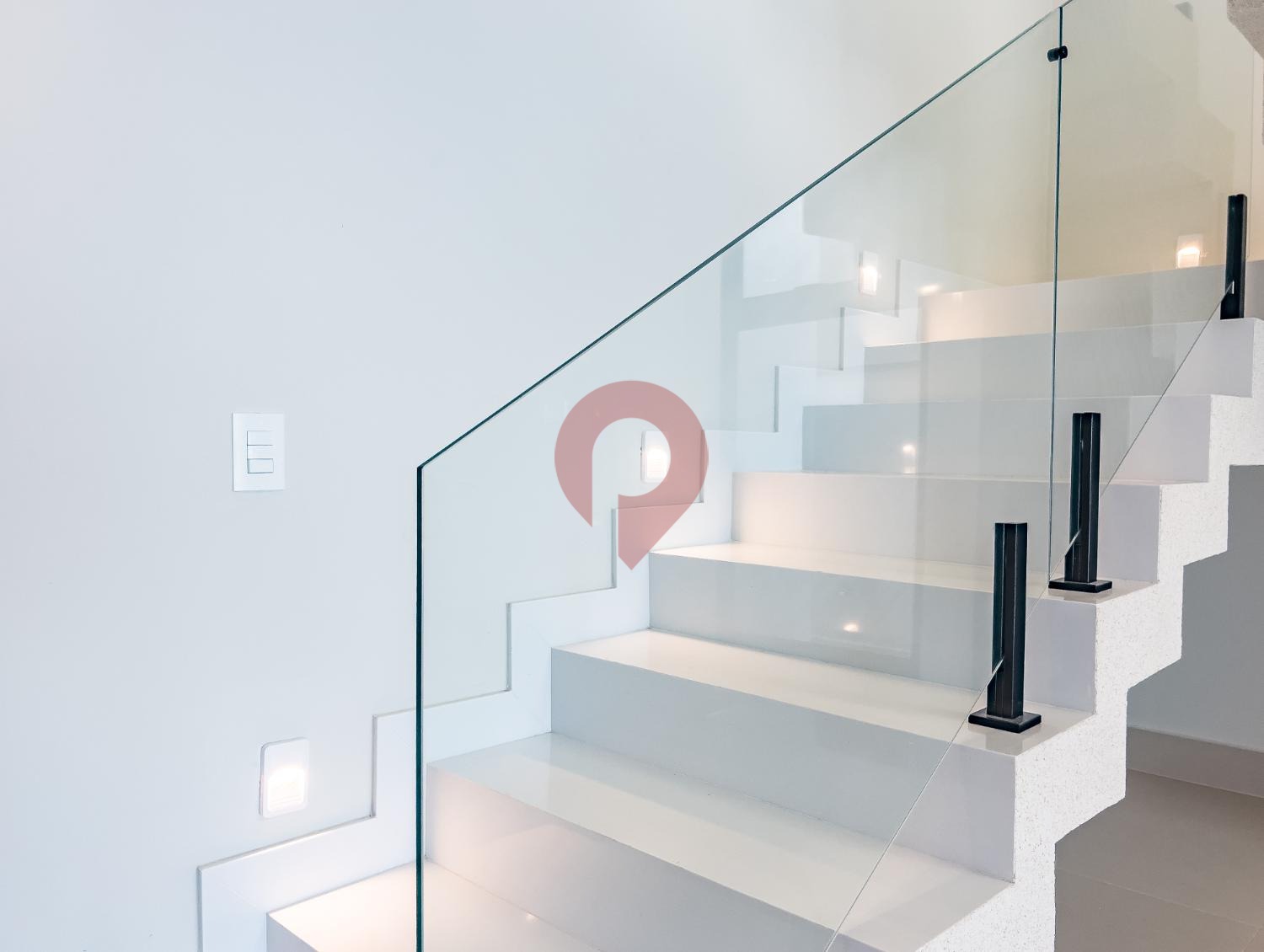 Para conforto total em qualquer época do ano, a casa oferece infraestrutura completa para ar-condicionado em todos os ambientes, além de sistema de aquecimento solar com boiler de 500 litros e preparação para aquecimento solar da piscina. A iluminação interna conta com perfis em LED integrados, complementando a arquitetura com modernidade e eficiência.