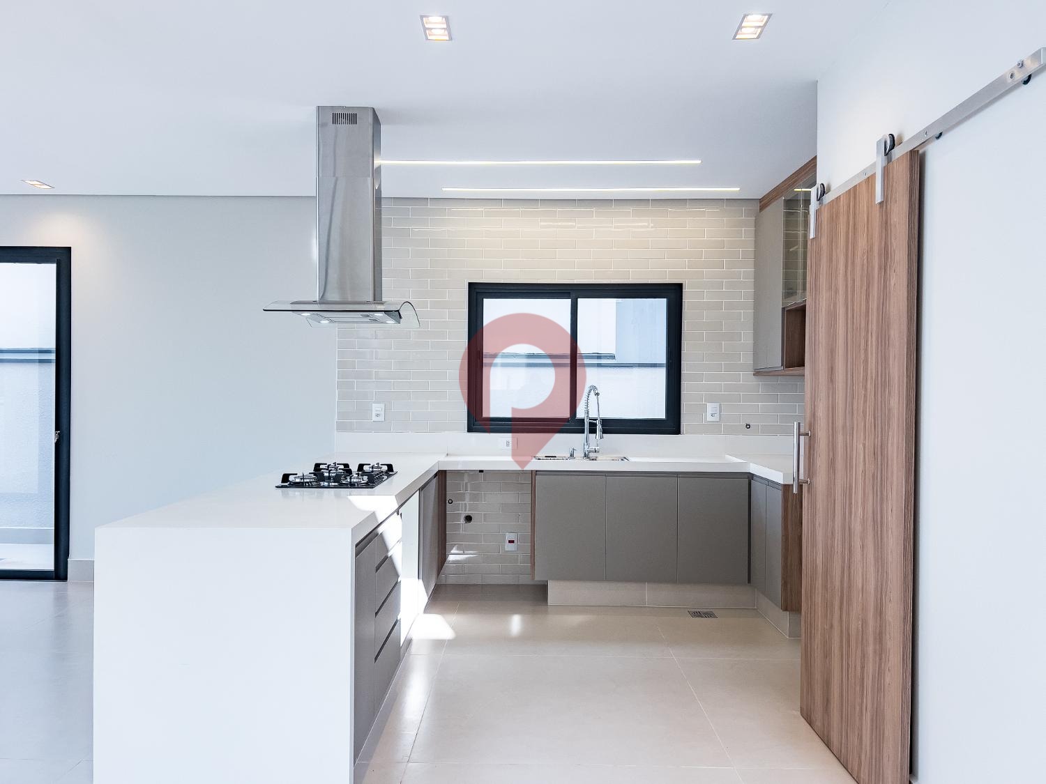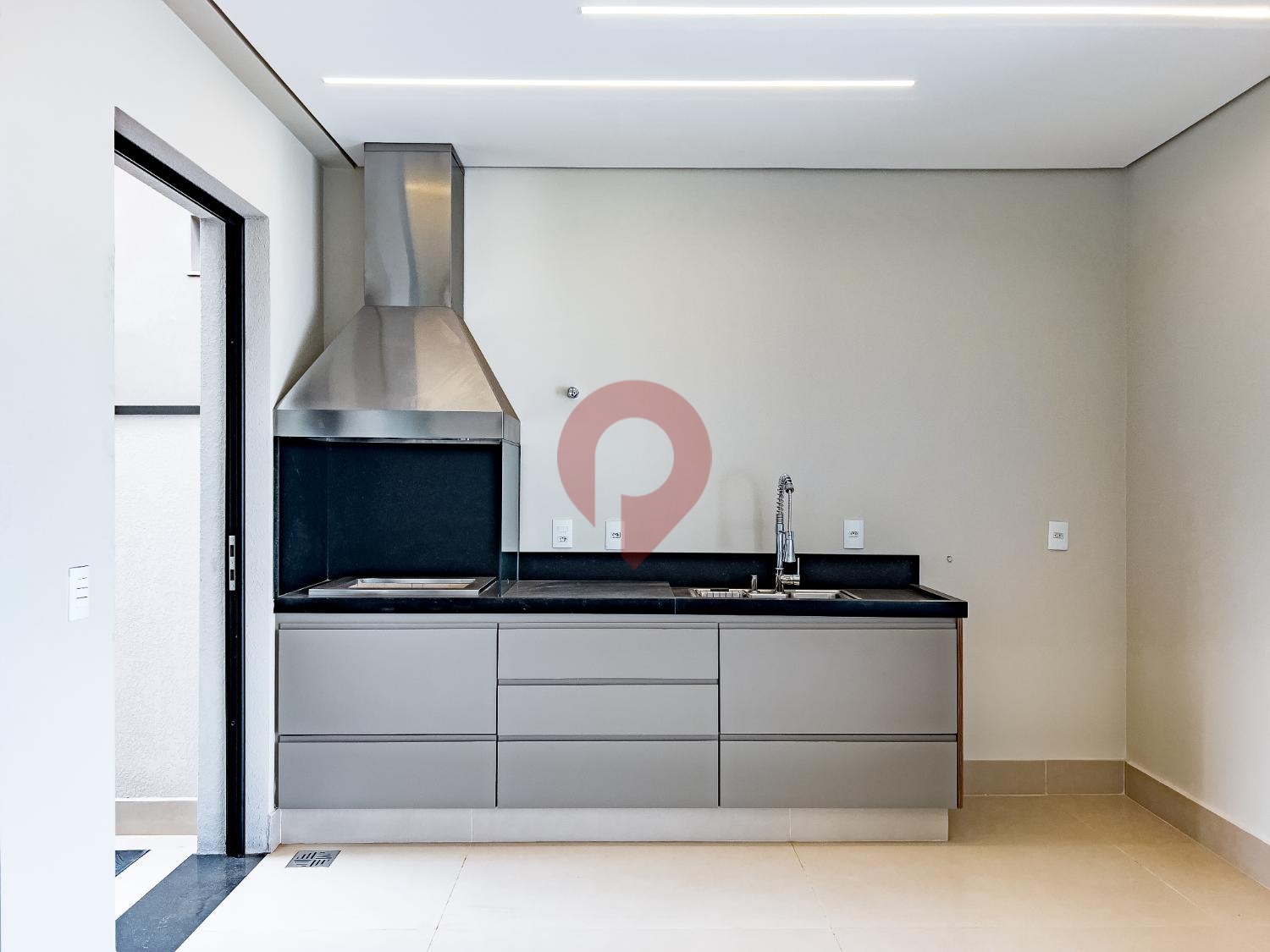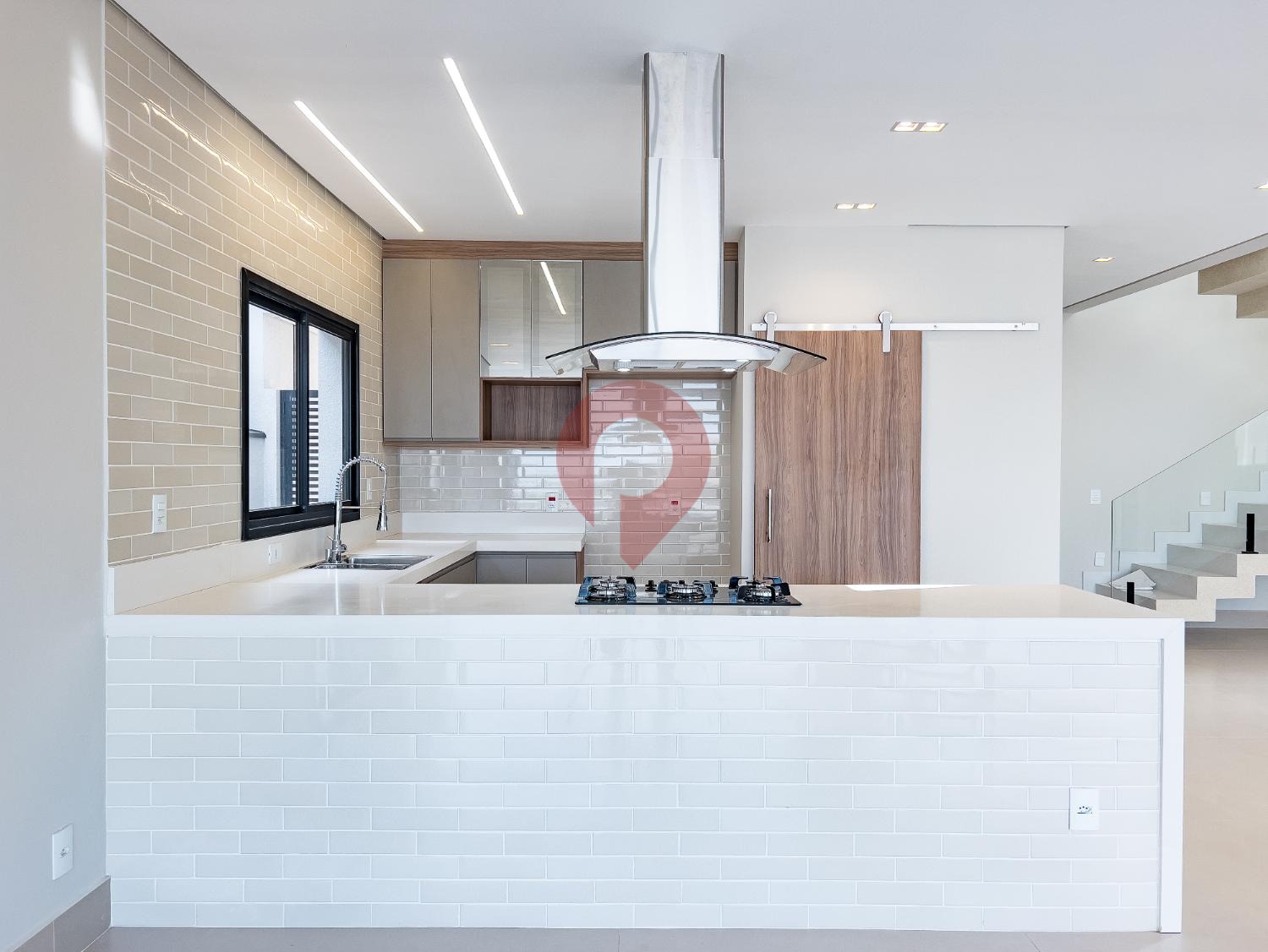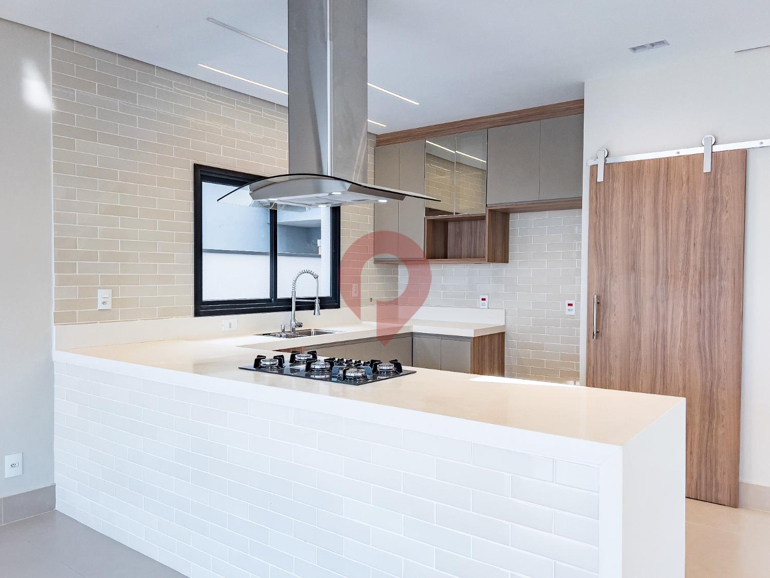 A cozinha, elegante e totalmente integrada, é complementada por uma despensa generosa, com 19 metros lineares de prateleiras em quartzo branco, garantindo organização e praticidade ao cotidiano. Ao lado, a área gourmet planejada, com portas de vidro de abertura total, cria a transição perfeita entre o ambiente interno e o lazer externo.