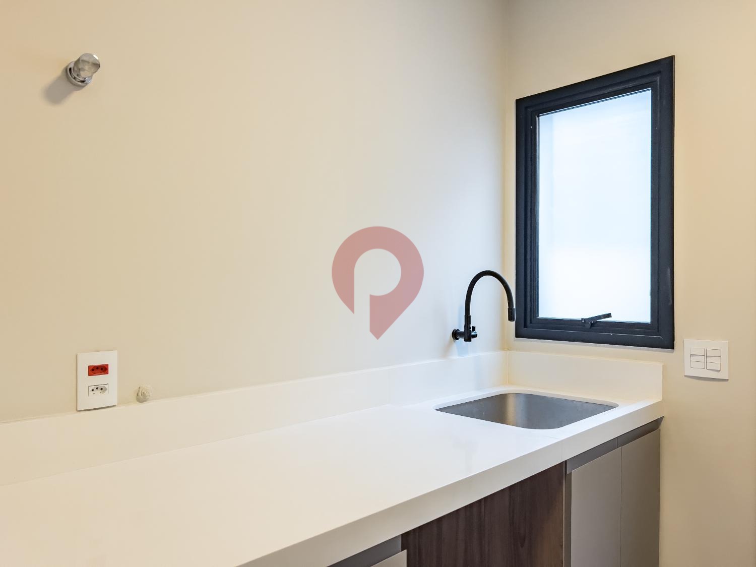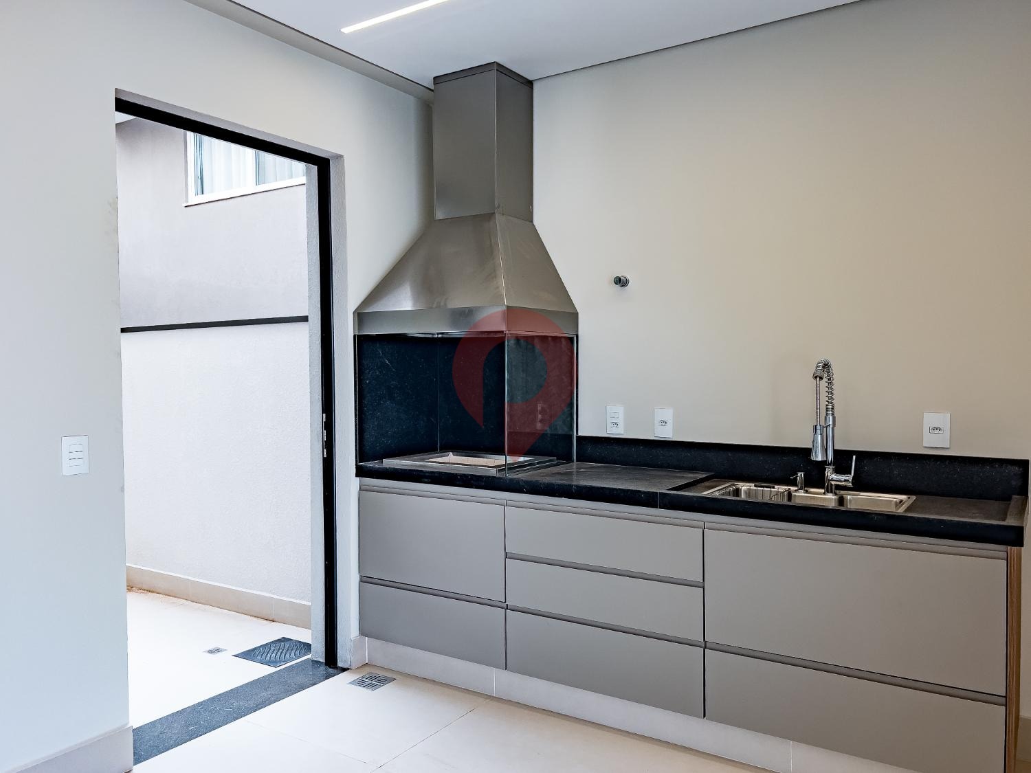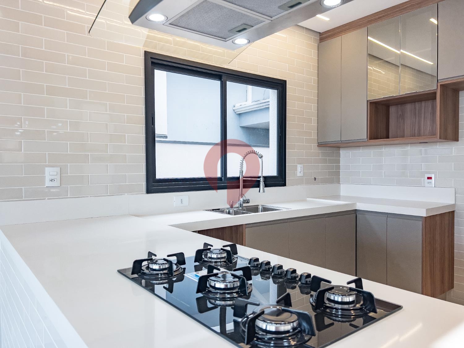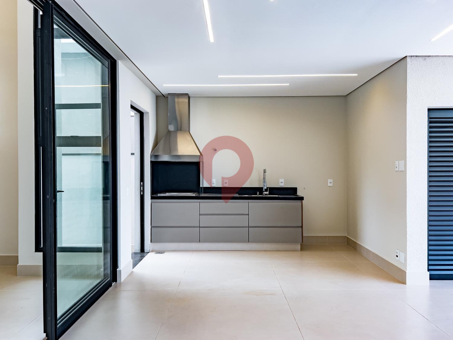 A cozinha, elegante e totalmente integrada, é complementada por uma despensa generosa, com 19 metros lineares de prateleiras em quartzo branco, garantindo organização e praticidade ao cotidiano. Ao lado, a área gourmet planejada, com portas de vidro de abertura total, cria a transição perfeita entre o ambiente interno e o lazer externo.