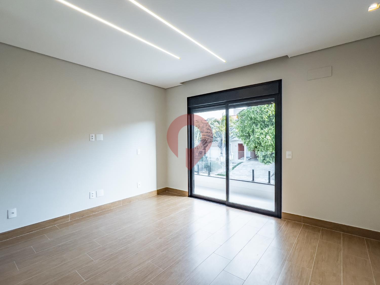 No pavimento térreo, um cômodo multiuso oferece versatilidade total, podendo funcionar como escritório, quarto hóspede ou até mesmo uma 4ª suíte, graças ao banheiro integrado, que também pode ser configurado como lavabo. Um segundo banheiro no térreo atende a área gourmet e o espaço social externo.