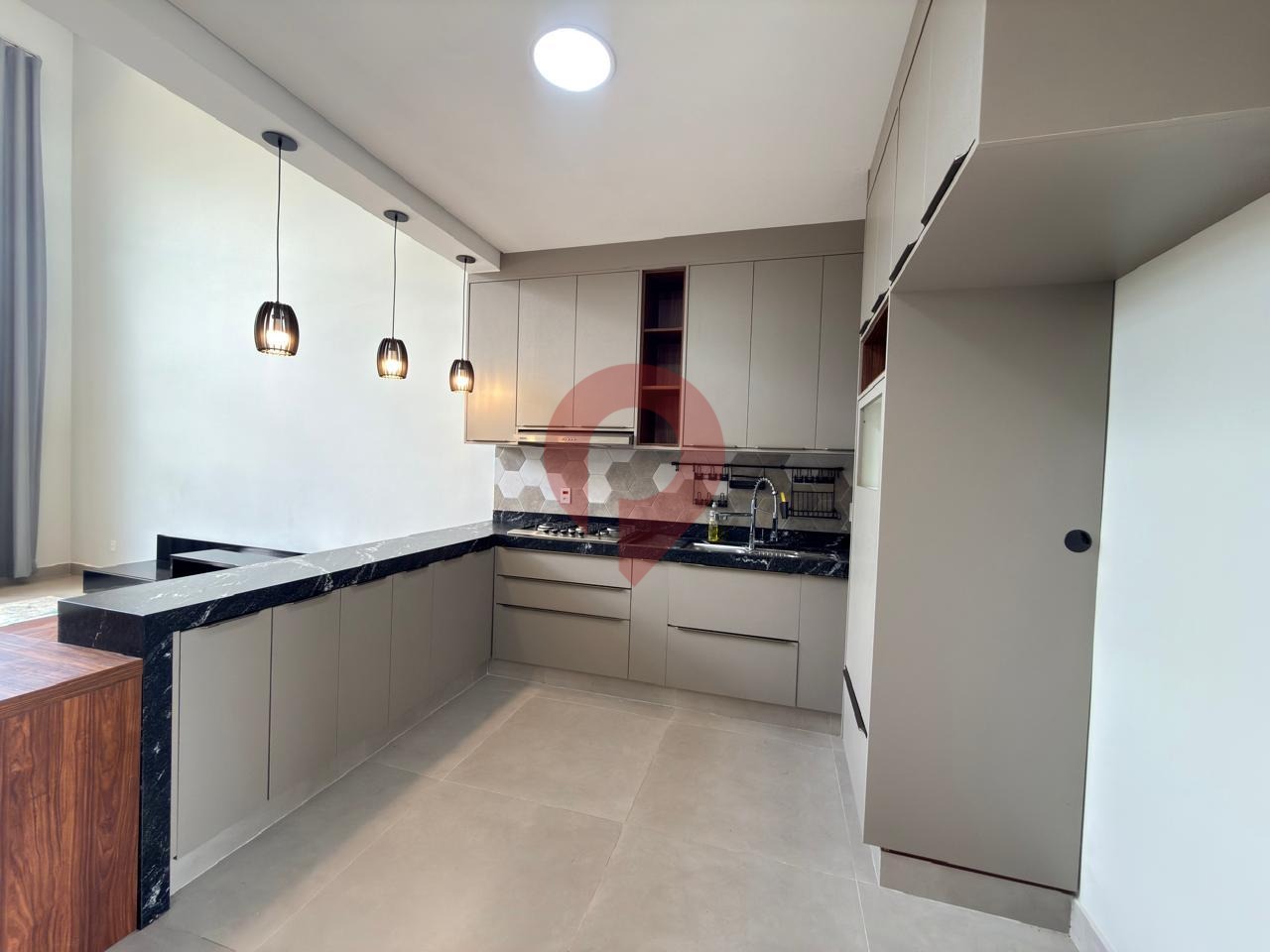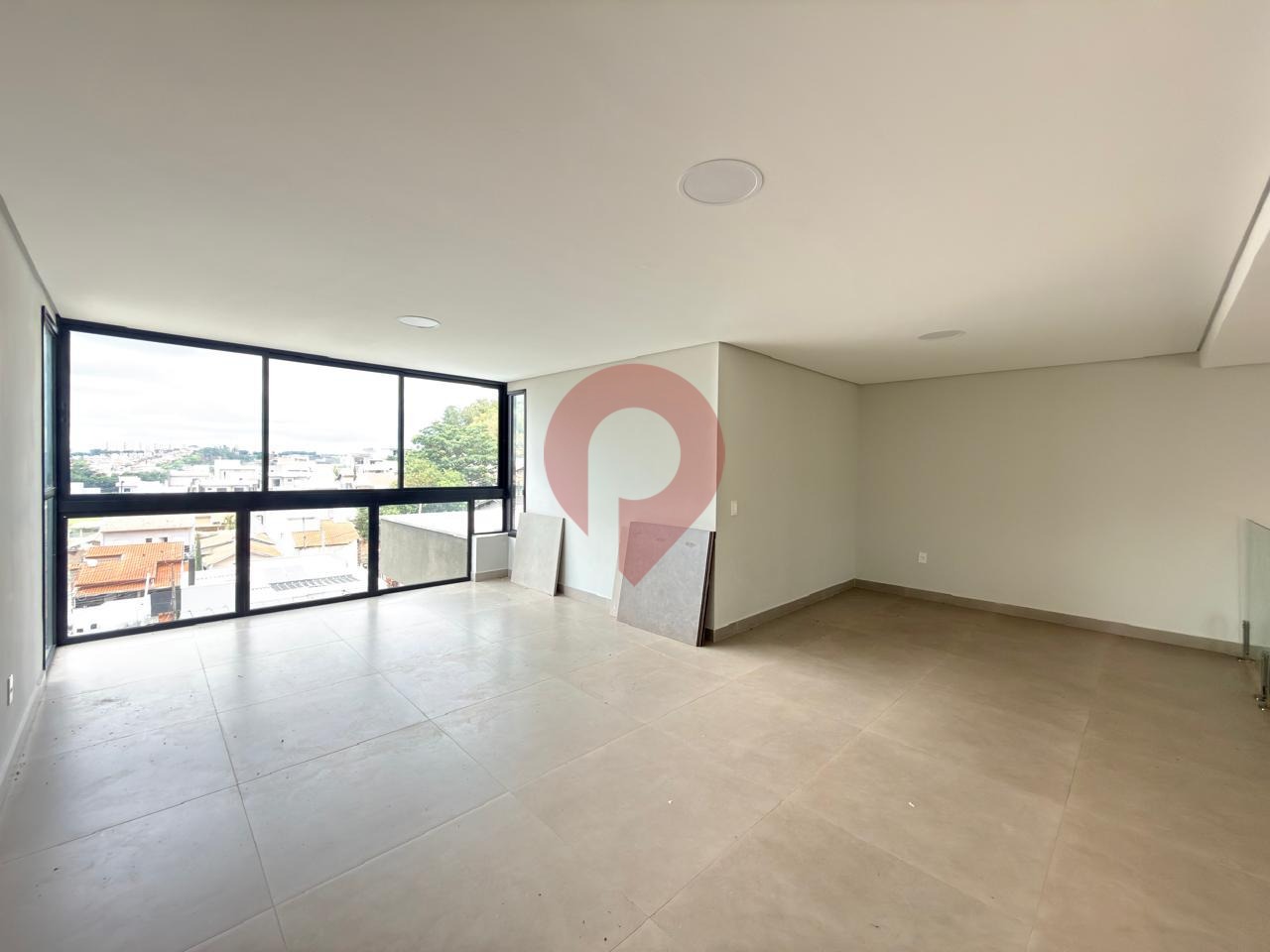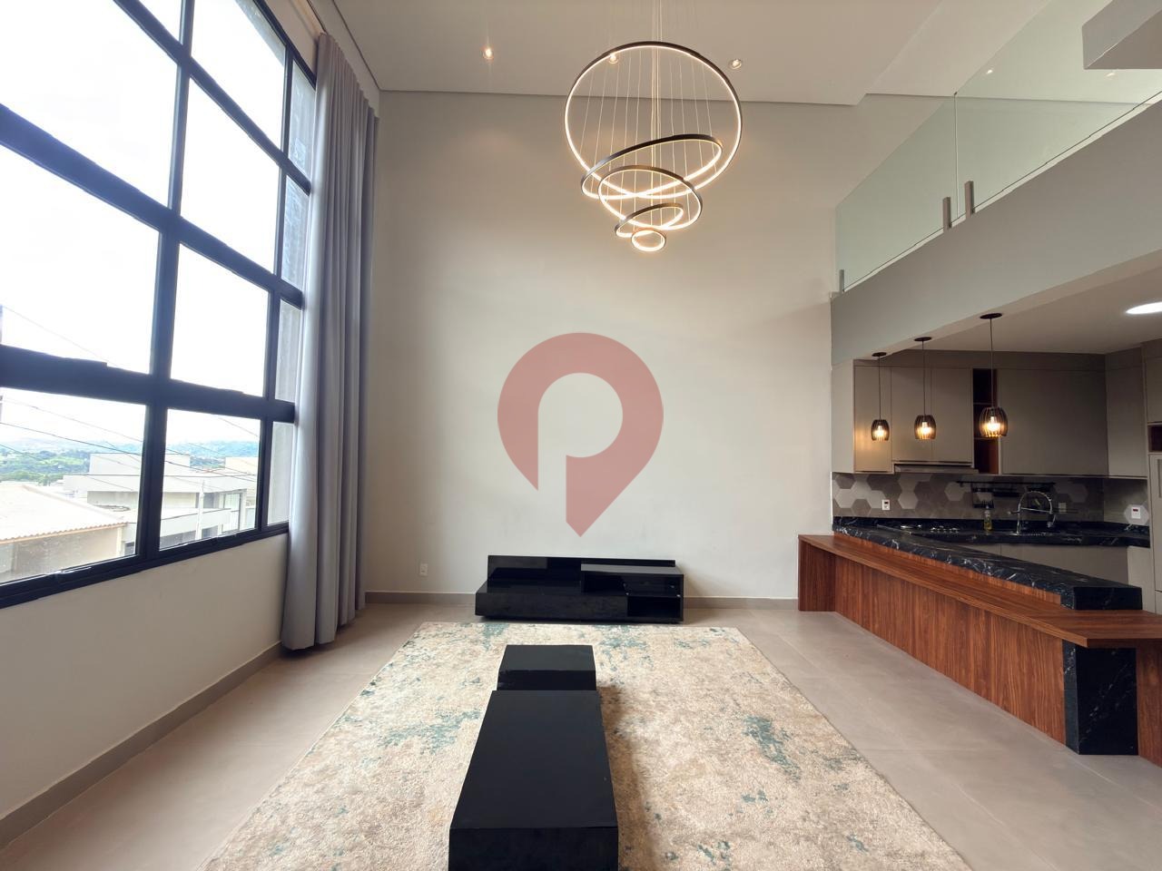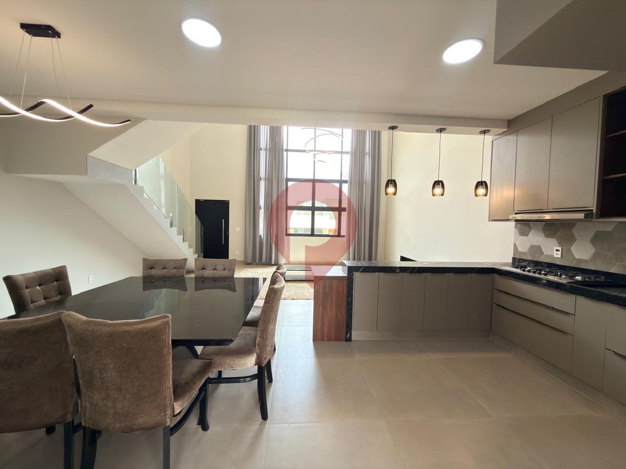 Logo ao entrar, você é recebido por uma ampla sala de estar e jantar integradas à cozinha, criando um ambiente moderno e acolhedor, valorizado pelo imponente pé-direito duplo que garante excelente iluminação natural e sensação de espaço.