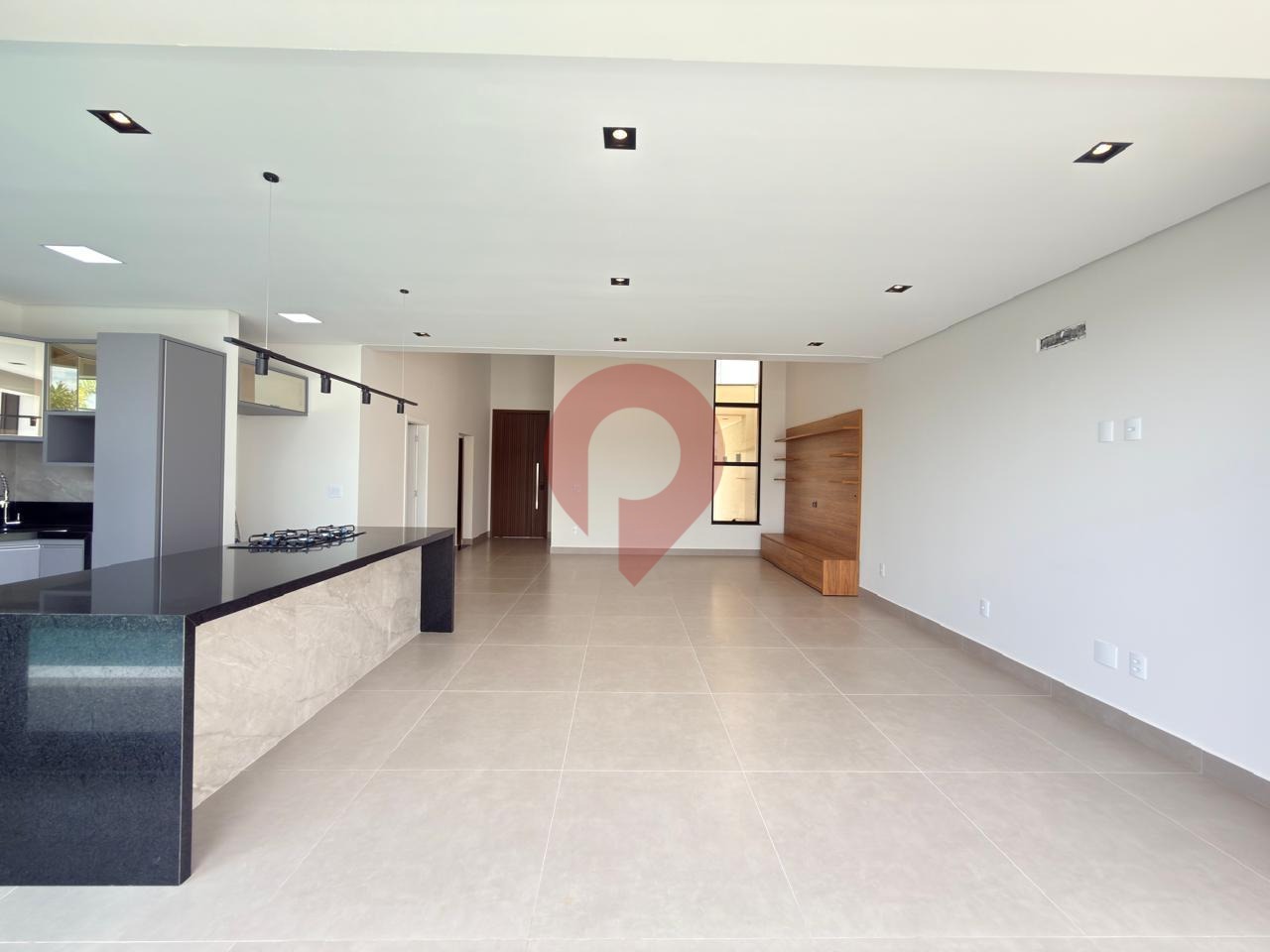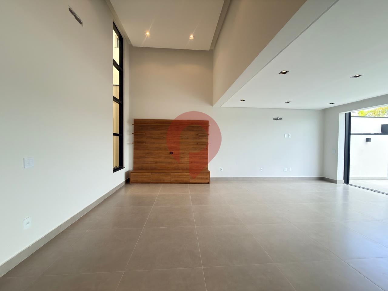 Logo na entrada, o pé-direito elevado na sala proporciona uma sensação incrível de amplitude e luminosidade, valorizada pela abundante iluminação natural e pelo sofisticado projeto de iluminação em LED.