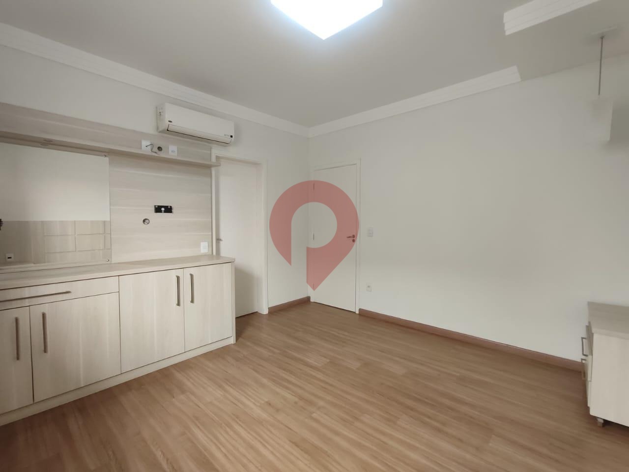 Uma ampla sala para 2 ambientes com ótima iluminação natural e um jardim de inverno tornando-a mais arejada. Escritório com armários.