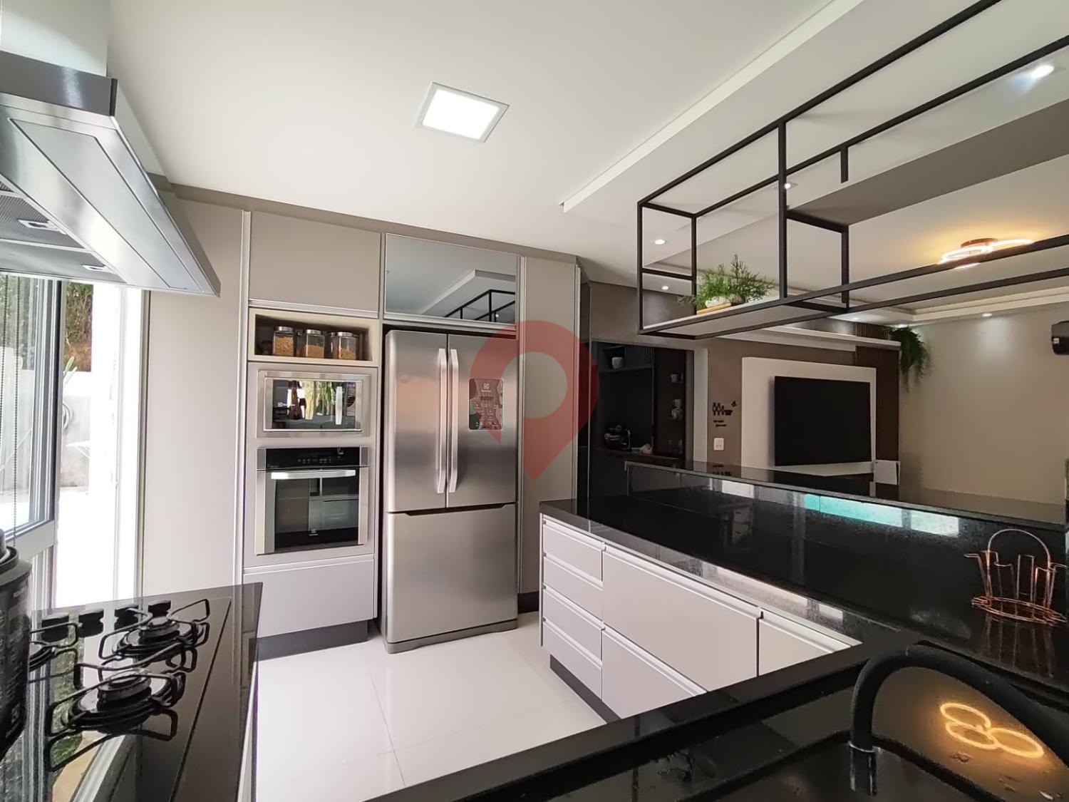 A cozinha é ricamente equipada com planejados de extremo bom gosto, unindo beleza e funcionalidade.