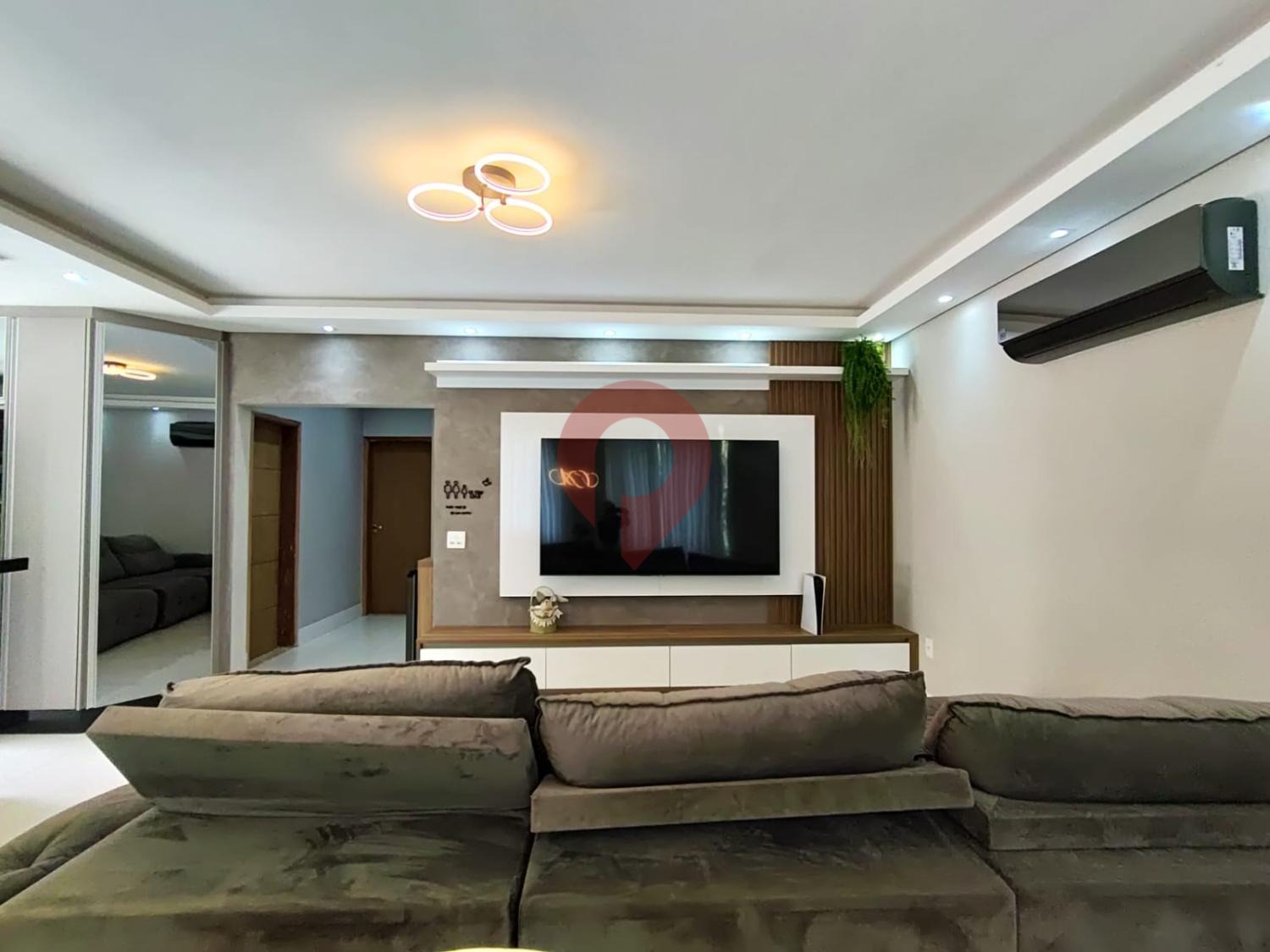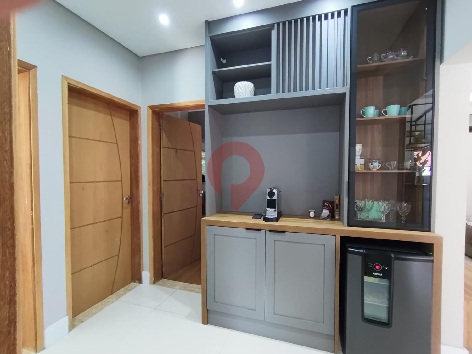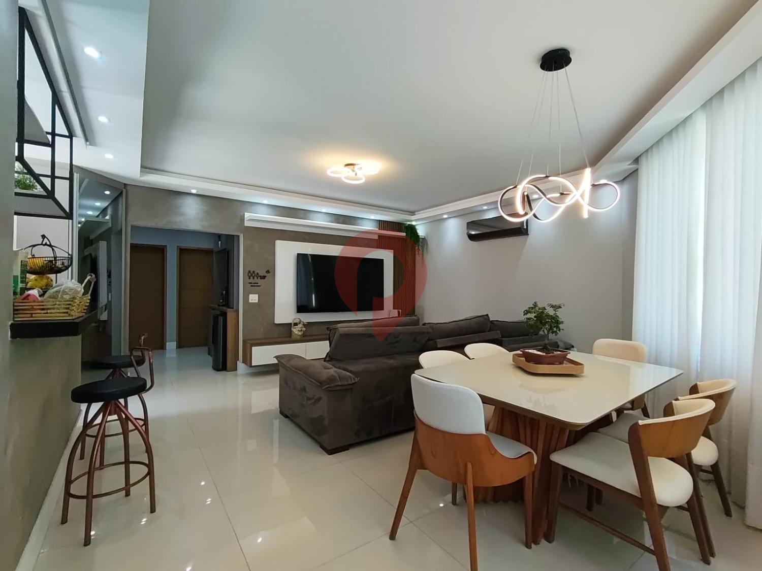 Oferece uma sala de TV e jantar integradas à cozinha estilo americana, criando um ambiente moderno, amplo e acolhedor.