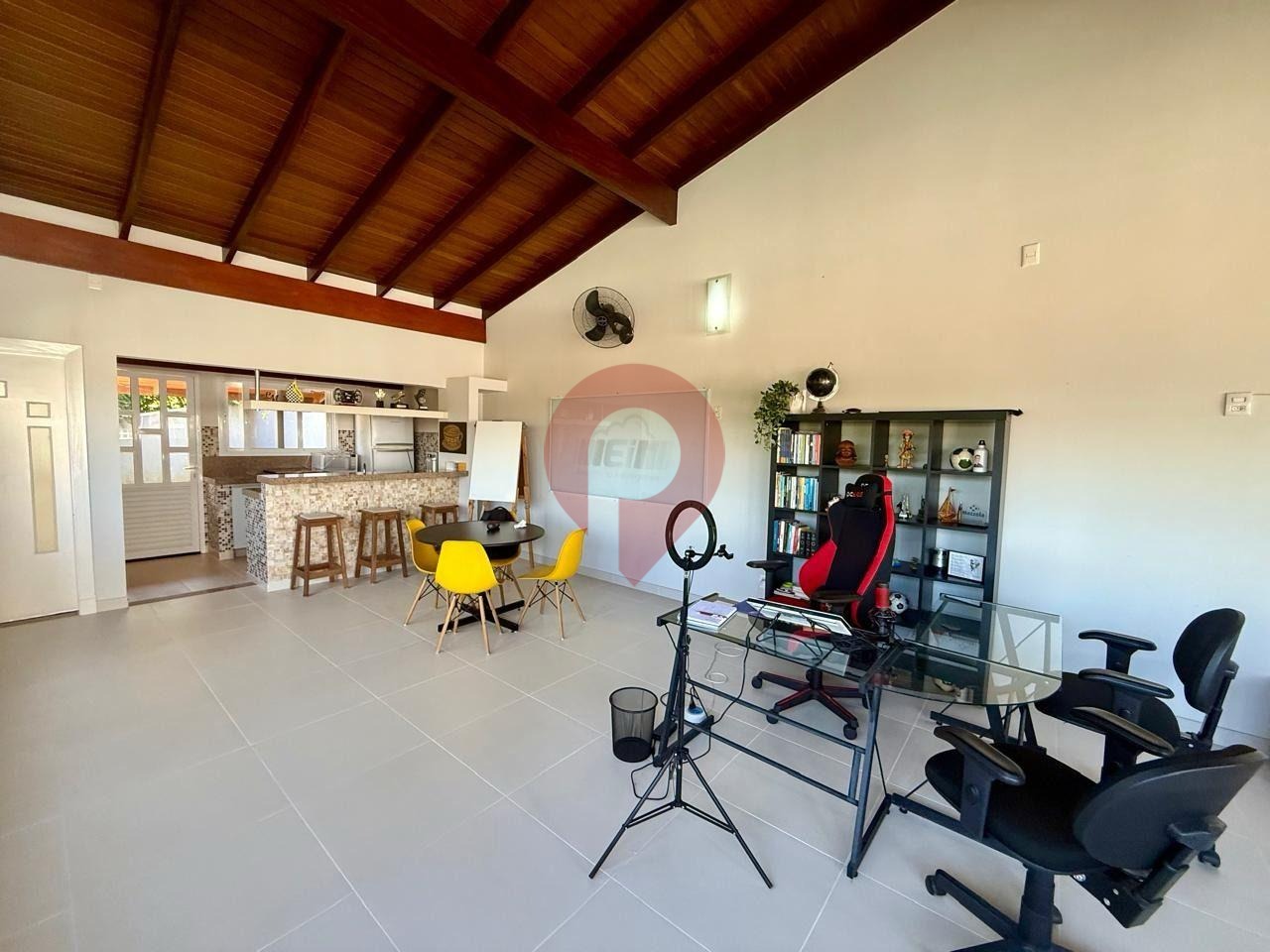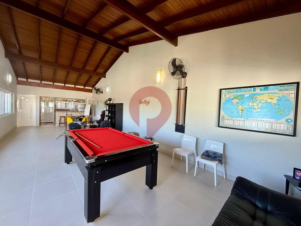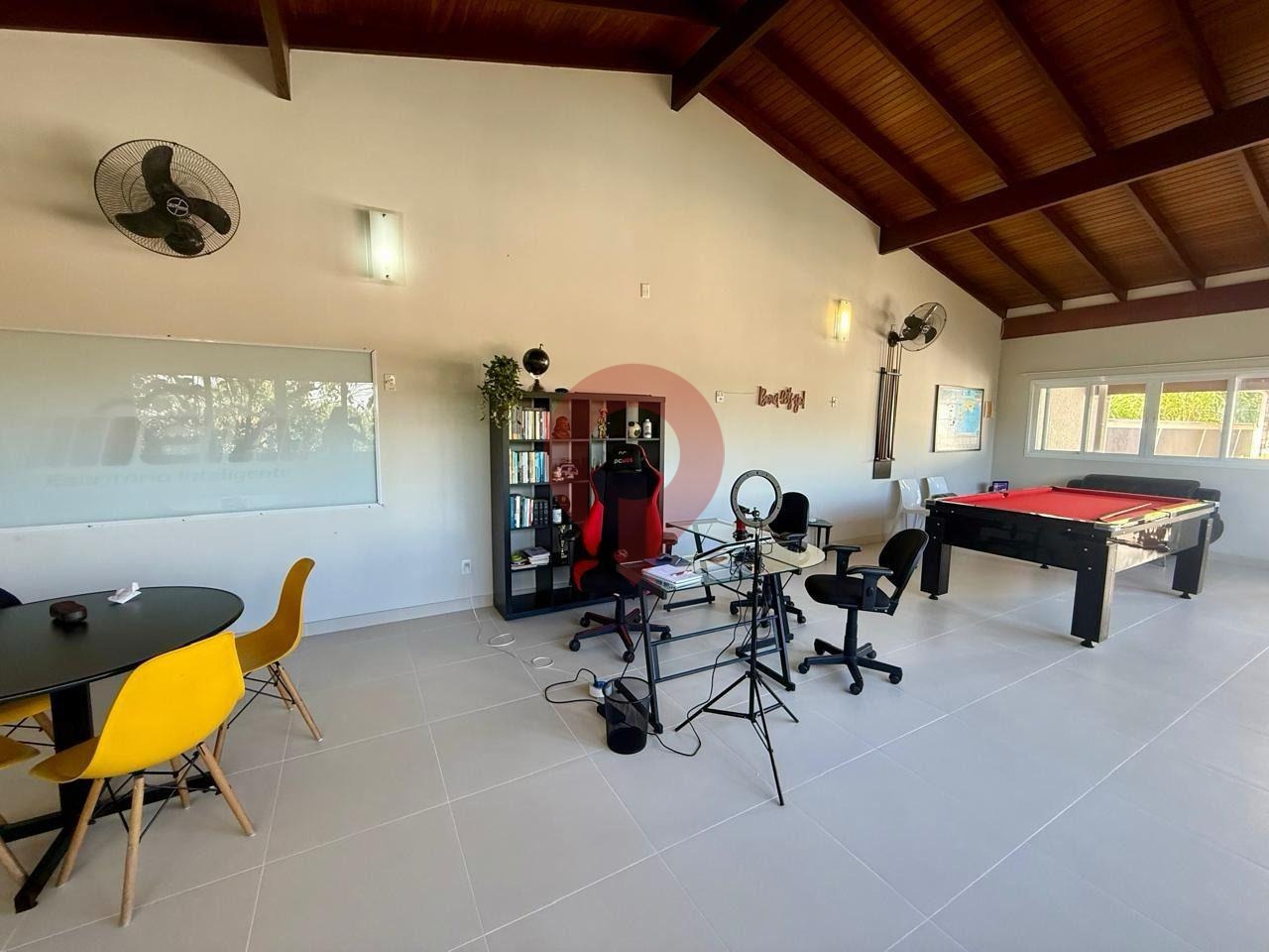 O imóvel ainda conta com um salão de jogos com escritório, ideal para momentos de lazer, que pode ser facilmente transformado em uma casa de hóspedes completa, com sala, cozinha, quarto e banheiro.