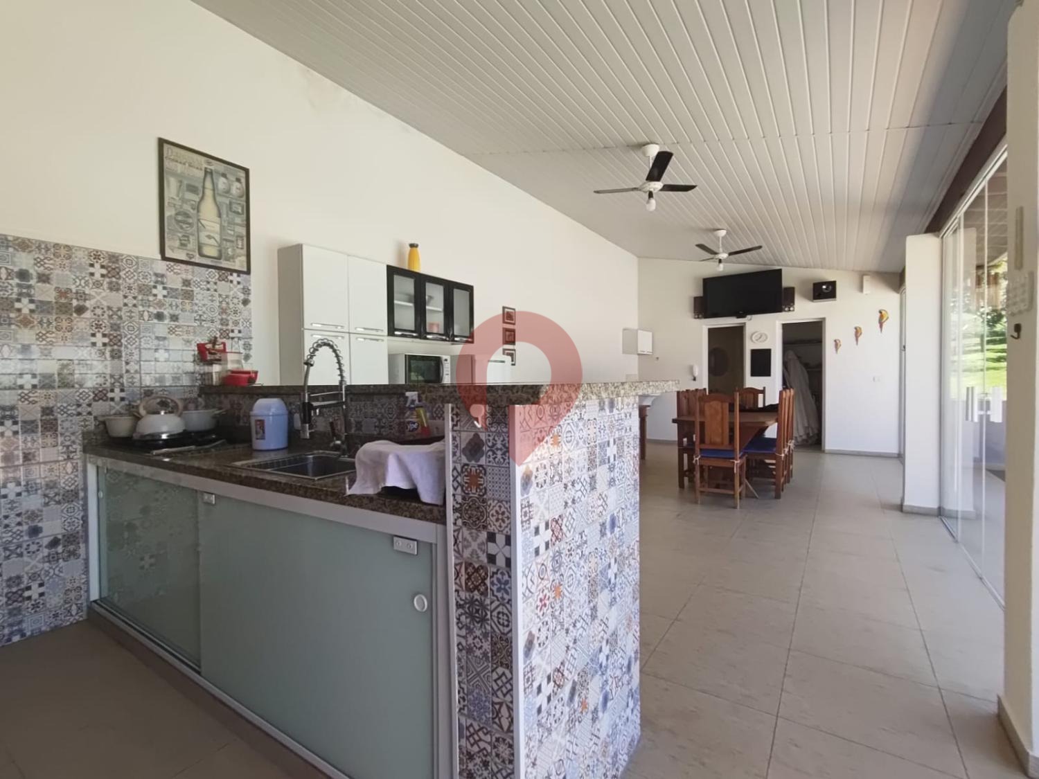 A casa principal conta com uma ampla sala de estar climatizada, integrada a uma varanda espaçosa, extremamente bem ventilada e iluminada, com fechamento em blindex e ventiladores de teto, um convite para relaxar e aproveitar bons momentos.